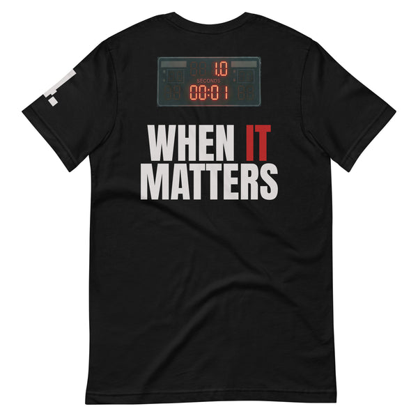 The Mr. Clutch tee is for players who live for the final possession. Featuring a clean front chest script and a cinematic scoreboard graphic on the back, this design captures the tension, focus, and confidence of end-of-game moments.